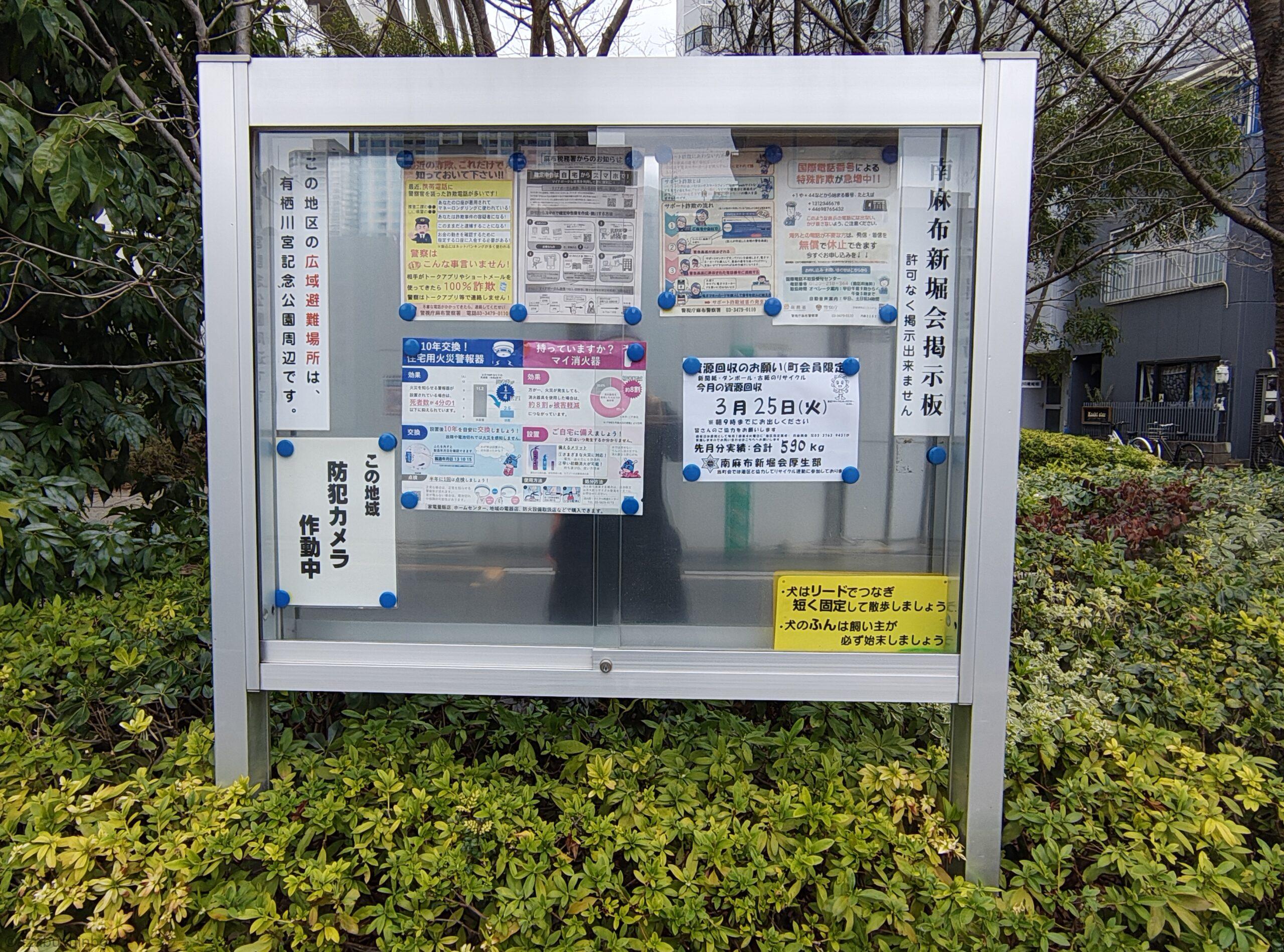 南麻布新堀町会は、町内の催しや港区、東京都、防犯協会などからのお知らせを、町会エリア内にある16カ所の掲示板に貼って、会員の皆さんに伝えています。毎月の理事会や町会役員の相互連絡によって、掲示板への掲載を更新しています … 続きを読む