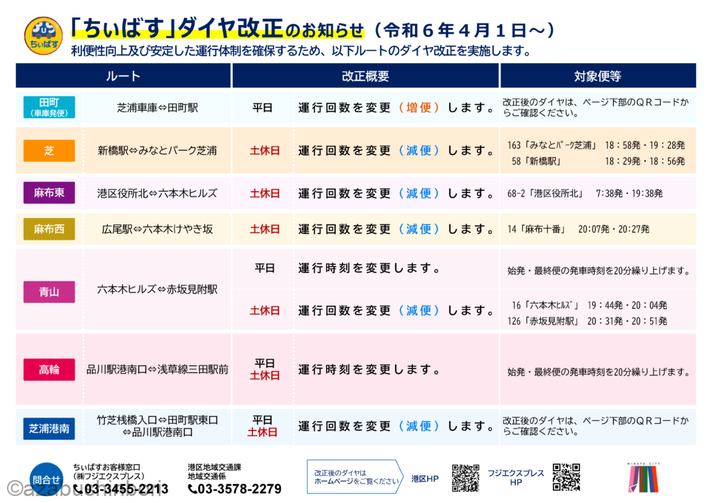 港区は「利便性向上」と「運行体制の確保」と理由としていますが、減便路線が多くなっています。