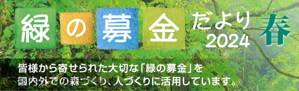 きれいな空気、おいしい水、心身の癒し、地球温暖化の防止など、森林はわたしたちの豊かな生活を支え、多くの恵みを与えてくれます。しかし、いま国内では手入れ不足等によって森林が本来のはたらきを発揮できていません。皆様のご協力は「緑の募金」を通して、身近な地域や国内外の森づくりにつながり、さまざまな「森づくり・人づくり」活動の活性化に活かされます。(緑の募金HPより引用)