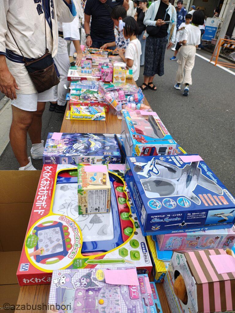 子ども神輿の後は福引だ。大当たりには鐘がなる。子どもたちは、賞品を抱えて、嬉しそうにかき氷を食べていた。