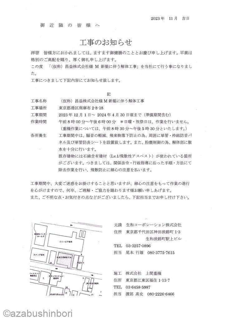旧真興交易の建物解体に関する近隣関係住民に対する説明会が1月12日、午後6時半から、南麻布の生き生きプラザで開かれました。